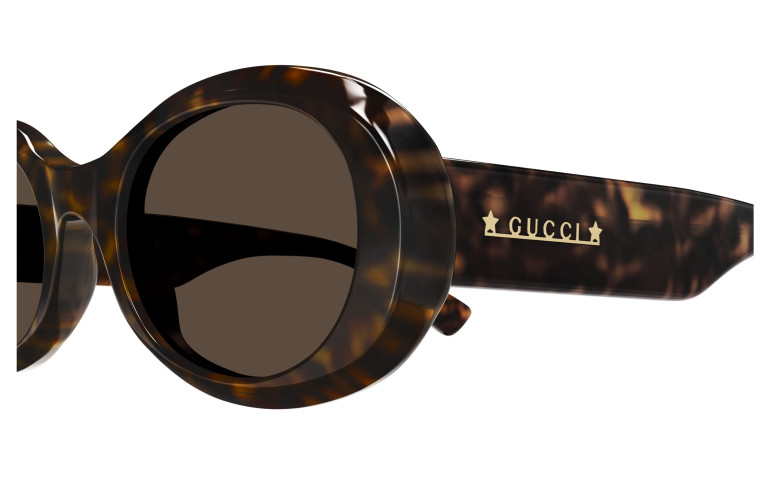 L'univers Gucci est parsemé de symboles et d'images dans un alphabet composé de petits animaux, de fleurs, de plantes et de souvenirs, un langage désormais commun. Le symbole associé au logo est imperceptible au toucher, brillant, iconique et raffiné. La finition unique est en acétate. Les modèles femme et homme arborent l’inscription logo Gucci sur les deux branches, mais sont rehaussés de symboles différents : petits astérisques pour les hommes, étoiles pour les femmes. La palette de couleur est tendance et captivante.
