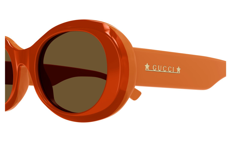 L'univers Gucci est parsemé de symboles et d'images dans un alphabet composé de petits animaux, de fleurs, de plantes et de souvenirs, un langage désormais commun. Le symbole associé au logo est imperceptible au toucher, brillant, iconique et raffiné. La finition unique est en acétate. Les modèles femme et homme arborent l’inscription logo Gucci sur les deux branches, mais sont rehaussés de symboles différents : petits astérisques pour les hommes, étoiles pour les femmes. La palette de couleur est tendance et captivante.