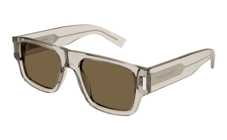 UNE MONTURE MASCULINE AVEC PARTIE SUPÉRIEURE PLATE DANS LE NOUVEAU CONCEPT CLÉ INNOVANT DE LA SAISON, NAKED WIRECORE, POUR CRÉER UNE SIGNATURE SAINT LAURENT FORTE. CE MODÈLE EST REHAUSSÉ DU PLUS GRAND CORNER ANGLE JAMAIS CRÉÉ (1 CM), CORRESPONDANT À LA DIMENSION DE L’ÂME MÉTALLIQUE. LES BRANCHES AUDACIEUSES EN ACÉTATE SONT FABRIQUÉES DANS UN NOUVEAU MATÉRIAU INNOVANT QUI PERMET DE METTRE EN ÉVIDENCE L’ÂME MÉTALLIQUE ORNÉE DU LOGO SAINT LAURENT GRAVÉ AU LASER ET DOTÉE D’UNE FINITION ULTRA-BRILLANTE. LA PALETTE DE COULEURS COMPREND DES ASSOCIATIONS DE COULEURS EMBLÉMATIQUES AVEC DES CRISTAUX SUR LES BRANCHES ET DES COULEURS DE SAISON TRANSPARENTES.