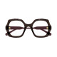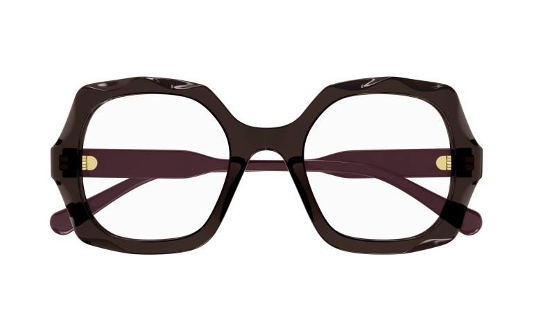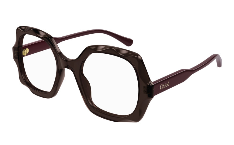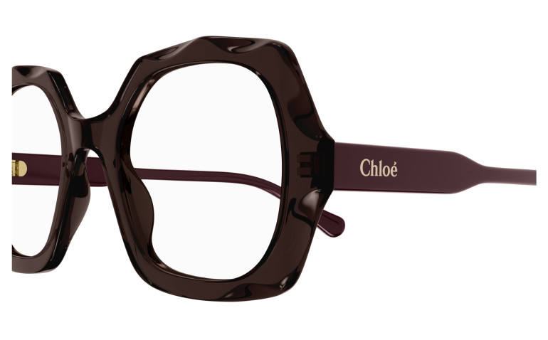 Monture carrée arrondie et oversize en acétate avec motif festonné sur le cercle. Cercle de couleur transparente associé à des branches unies ton sur ton. Logo Chloé gravé au laser et émaillé sur les branches.