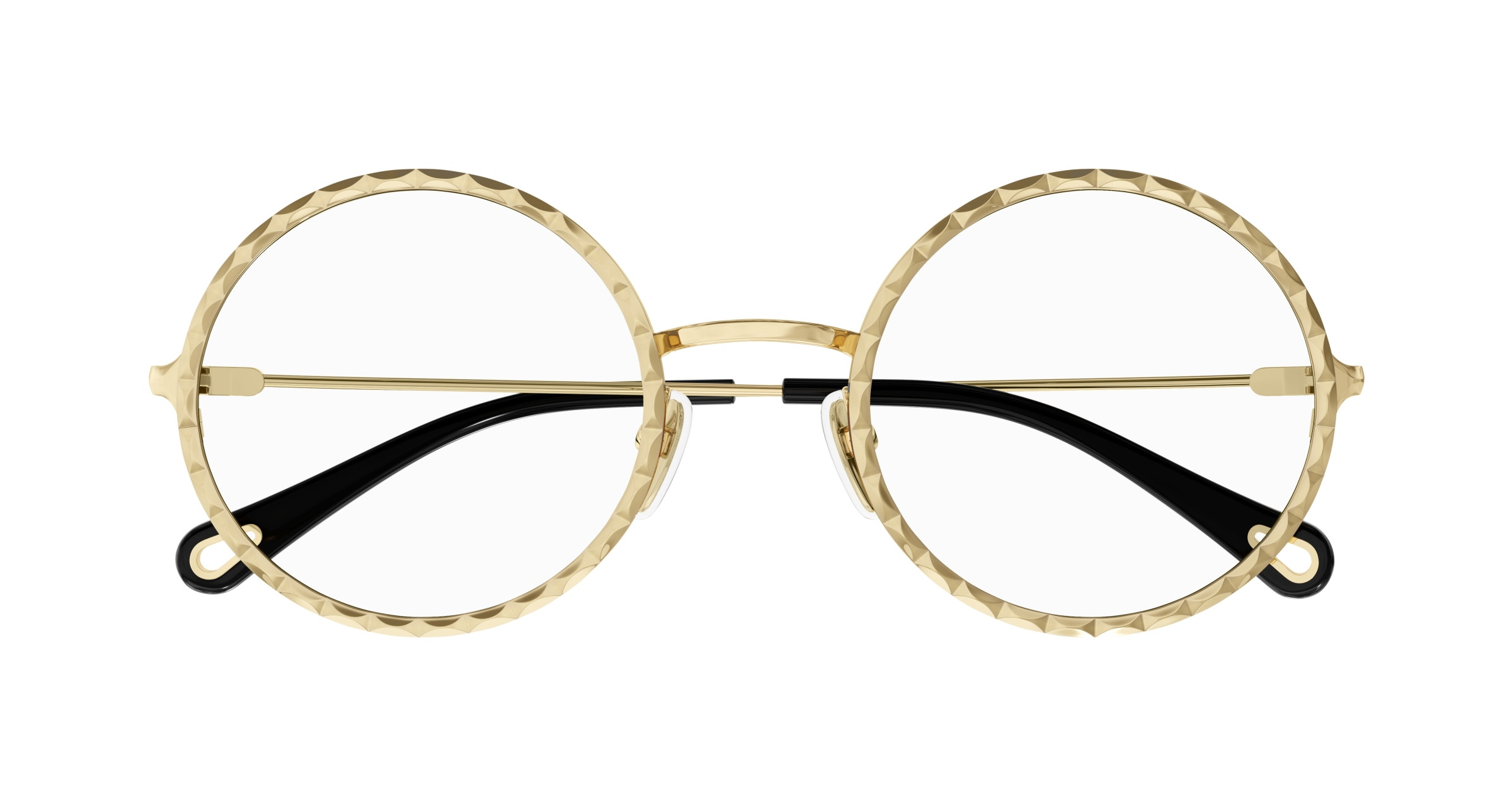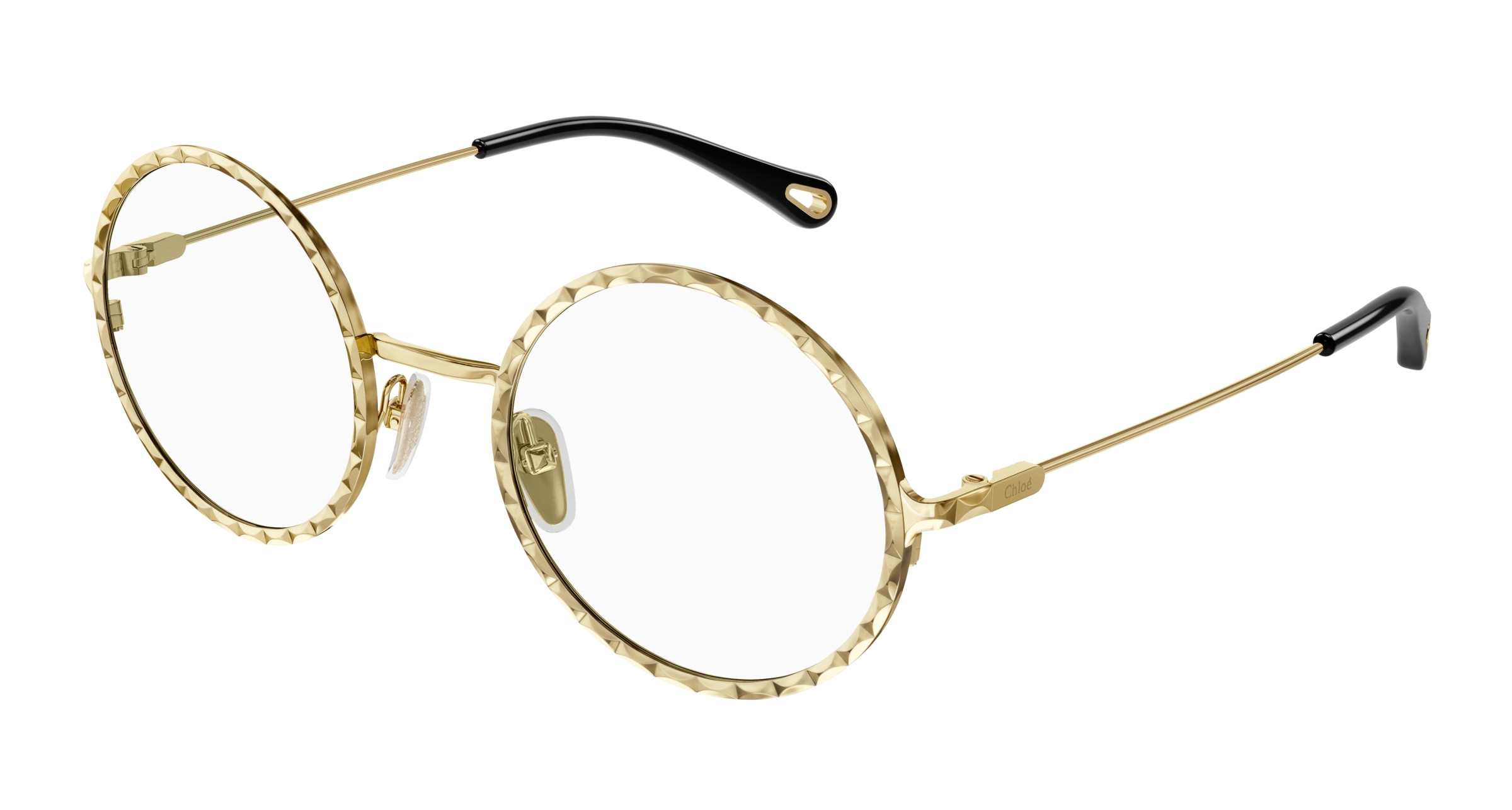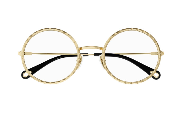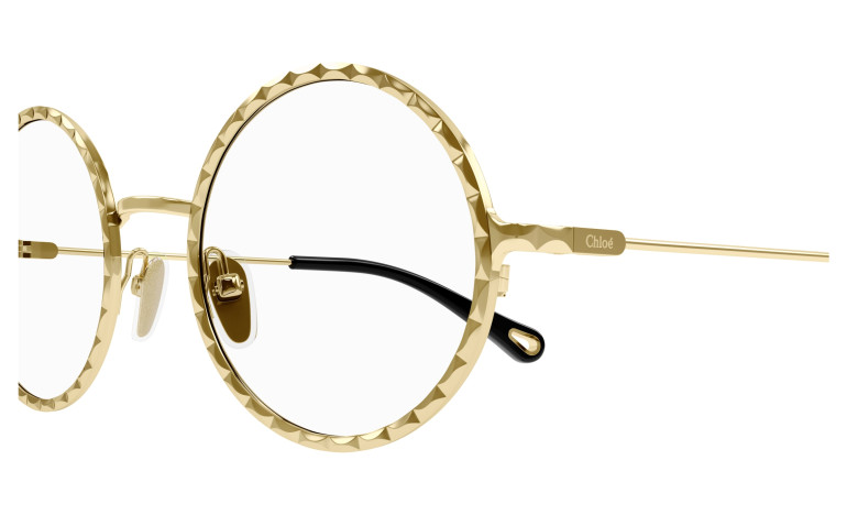 Monture ronde en métal au cercle doté d’un délicat effet festonné. Or rose et doré classique. Manchons en acétate ornés d’un détail Chloé en métal sur l’extrémité.
