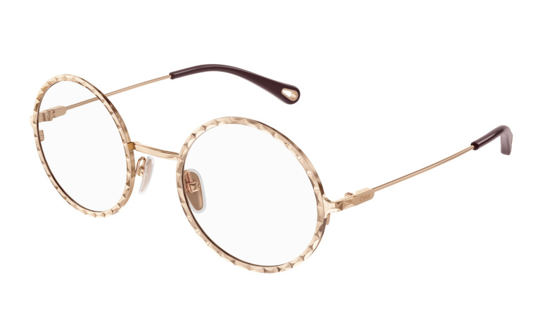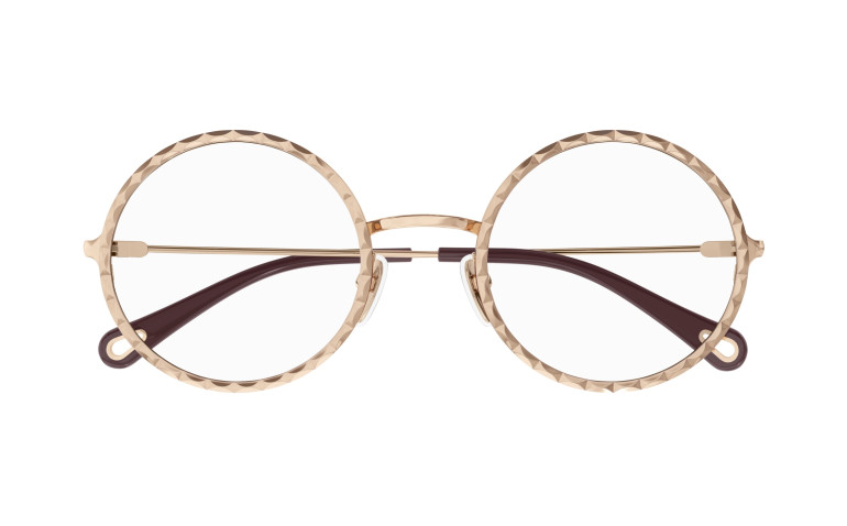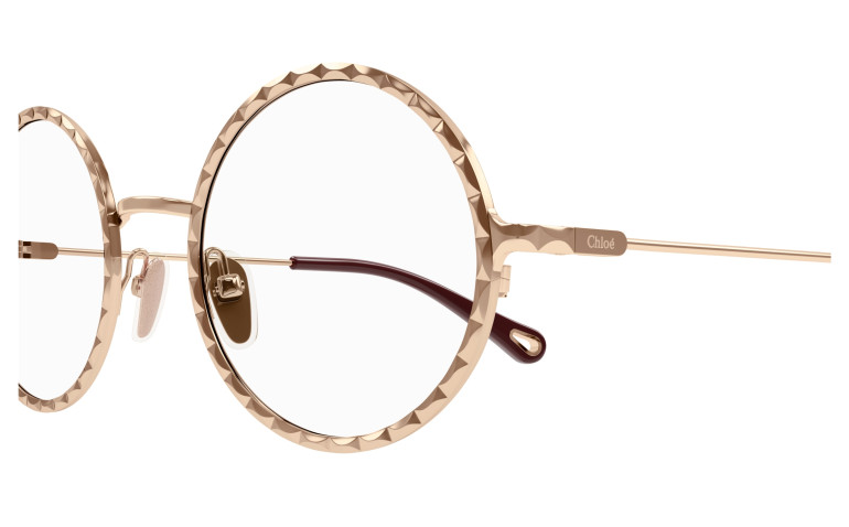 Monture ronde en métal au cercle doté d’un délicat effet festonné. Or rose et doré classique. Manchons en acétate ornés d’un détail Chloé en métal sur l’extrémité.