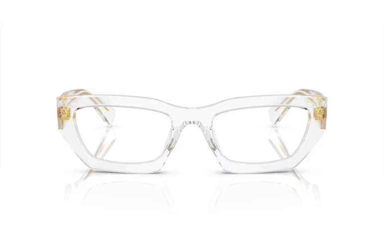 Chez Miu Miu, les looks audacieux ne se limitent pas aux lunettes de soleil, les modèles optiques ont aussi leur style affirmé. Avec sa monture irrégulière, son logo audacieux et ses couleurs captivantes, dont de nouveaux coloris transparents, ce modèle fera tourner les têtes.
