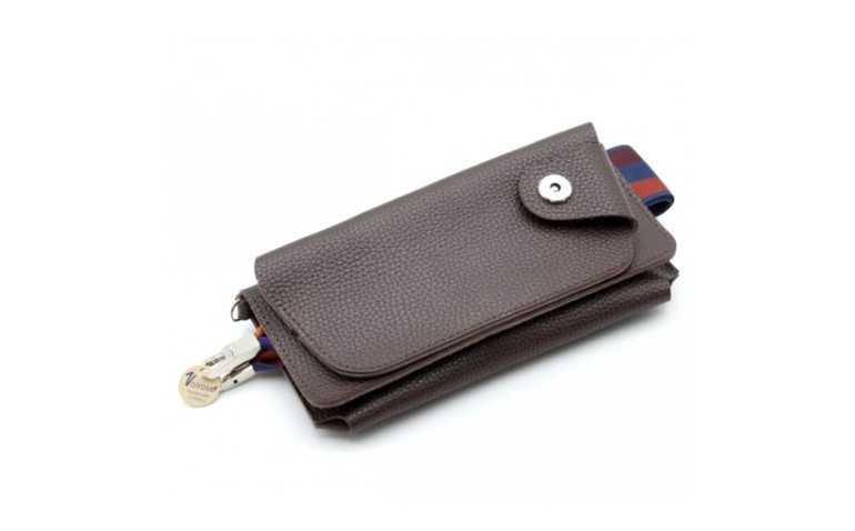 Petites sacoches en cuir avec rangements prévus pour téléphone, lunette et cartes.