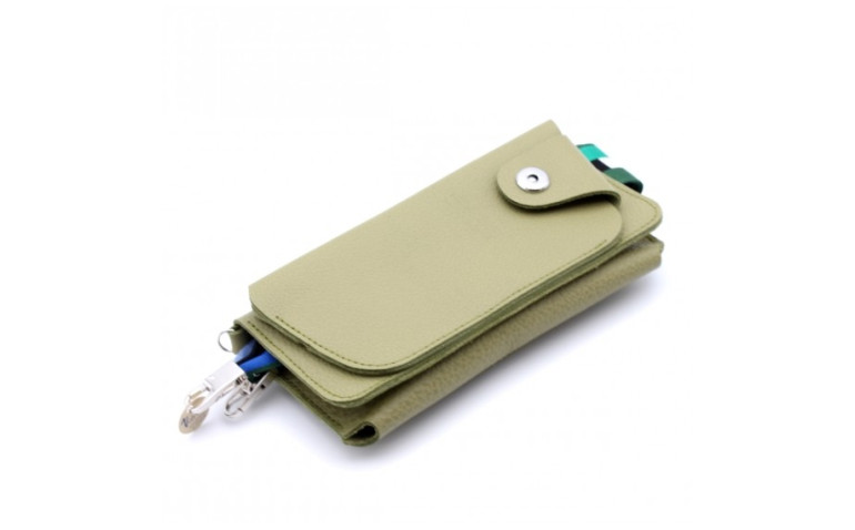 Petites sacoches en cuir avec rangements prévus pour téléphone, lunette et cartes.