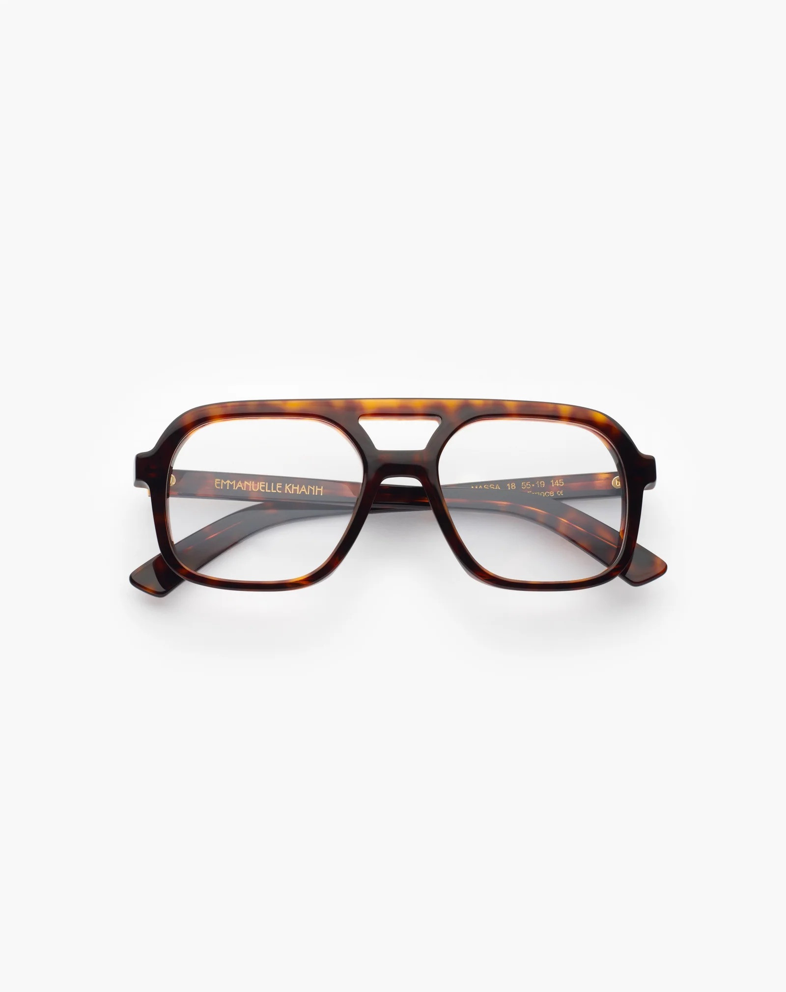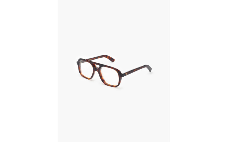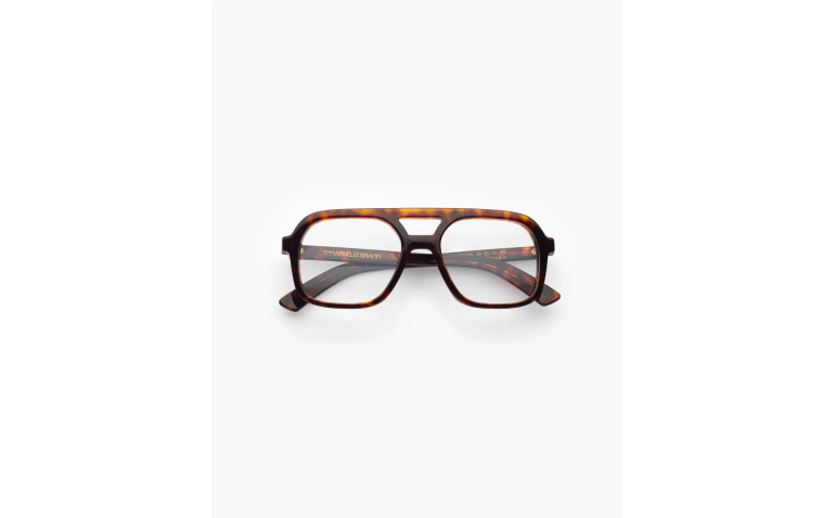 L'optique Massa est une lunette en acétate, fabriquée à la main en France. Le travail des biseaux marqués affiche un design audacieux. Ses branches sont ornées d'un monogramme en métal doré posé sous résine, pour une touche signature élégante et emblématique.