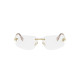 Le tout premier modèle optique Fendi First Crystal. Il présente une structure percée ornée des cristaux F emblématiques sur la face. Il s’accompagne de branches en métal élégantes et d’embouts en acétate pour plus de confort.