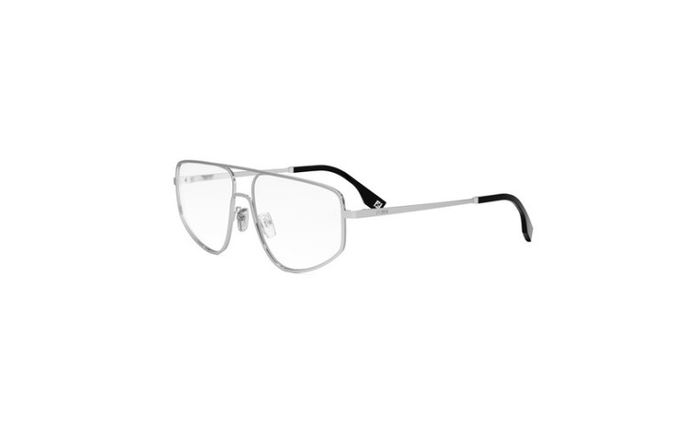 Ajout de la forme aviateur métallique à double pont dans la famille FENDI Travel, avec des embouts en acétate.