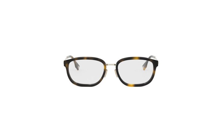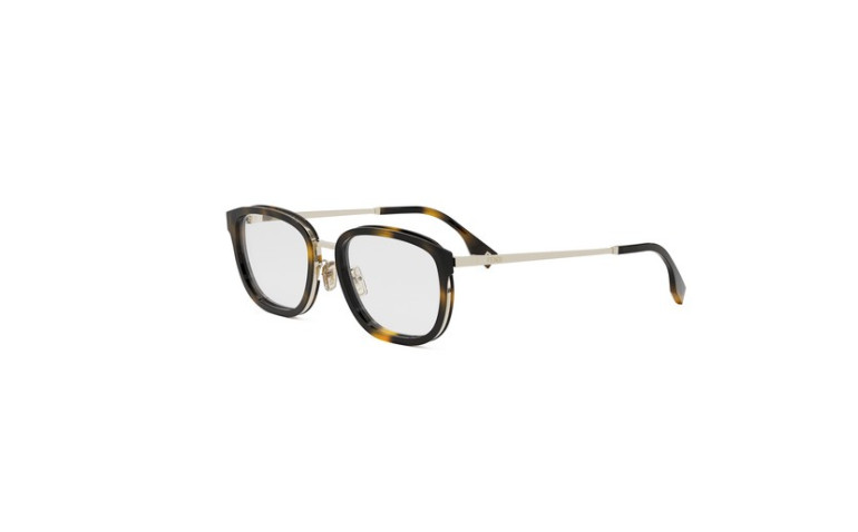Forme optique Fendi Travel complémentaire au modèle solaire. Elle présente un style combiné créant un contraste élégant entre la partie en acétate brillant et la structure métallique gravée « FF » dépassant sur les côtés. Modèle pensé pour les gentlemen modernes.