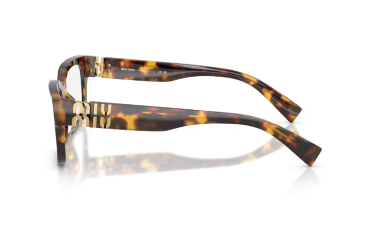 Dans ce modèle optique, le savoir-faire de Miu Miu dans la création de styles intemporels et quotidiens occupe le devant de la scène. Des couleurs classiques, telles que le miel havane et le tabac rayé, donnent vie à ces montures légères en acétate, rehaussées par le logo métallique Miu Miu qui sert également de charnière.