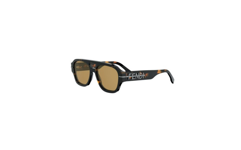 Construction masculine et moderne avec double pont de la famille Fendigraphy. Style d’inspiration vintage avec le logo FENDI gris acier élégant sur la face et les branches.
