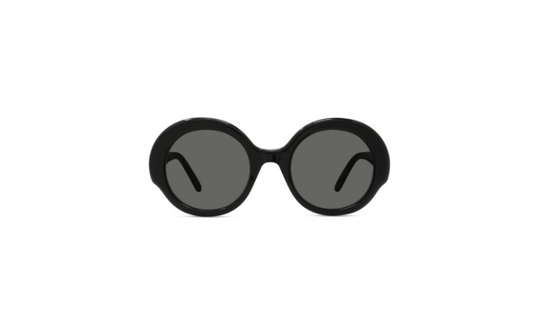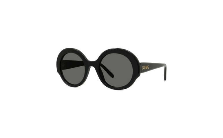 Nouvelle monture en acétate de forme ronde, légère et facile à porter, avec des embouts fins et arrondis et des branches en acétate ornées d’un logo Loewe laqué