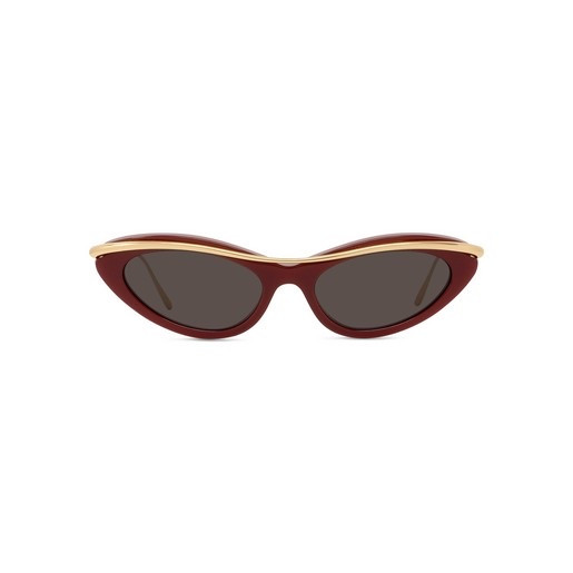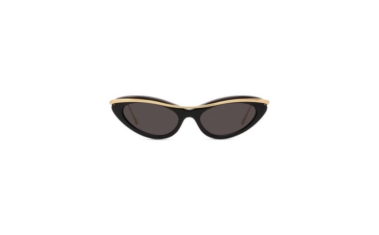Mini lunettes de soleil œil de chat en acétate coloré avec une barre en métal sur le dessus et des branches fines en métal avec le logo Loewe gravé sur les deux branches