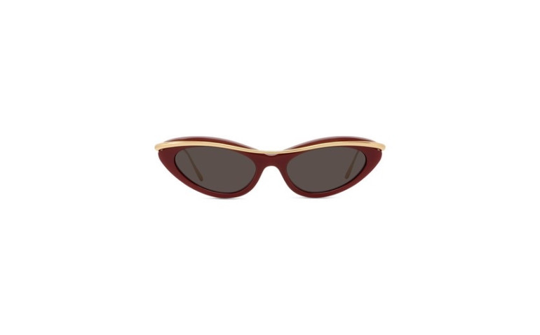 Mini lunettes de soleil œil de chat en acétate coloré avec une barre en métal sur le dessus et des branches fines en métal avec le logo Loewe gravé sur les deux branches