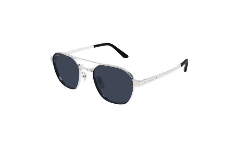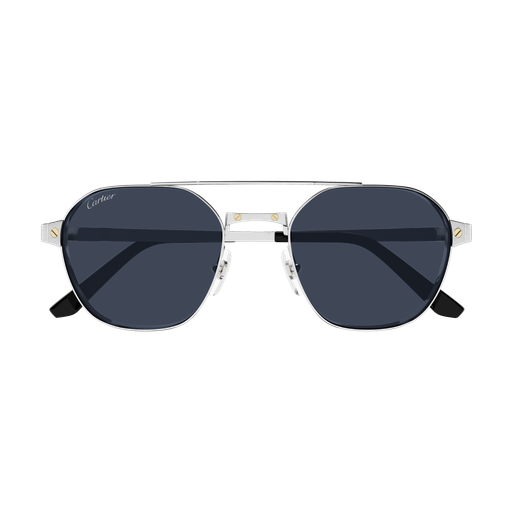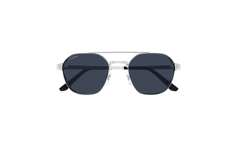 Monture carrée masculine aux angles arrondis et à double pont pour compléter la famille Santos Classic avec un design iconique. La charnière en métal est ornée d'un détail facetté sophistiqué, inspiré du bracelet métallique de l'emblématique montre Santos, et les branches Santos identifiables sont ornées des vis décoratives Santos. Les manchons en acétate évoquent la forme du boîtier de la montre Santos et sont ornés de la vis emblématique du même nom. Finition précieuse en or ou platine avec logo Cartier gravé sur les branches.