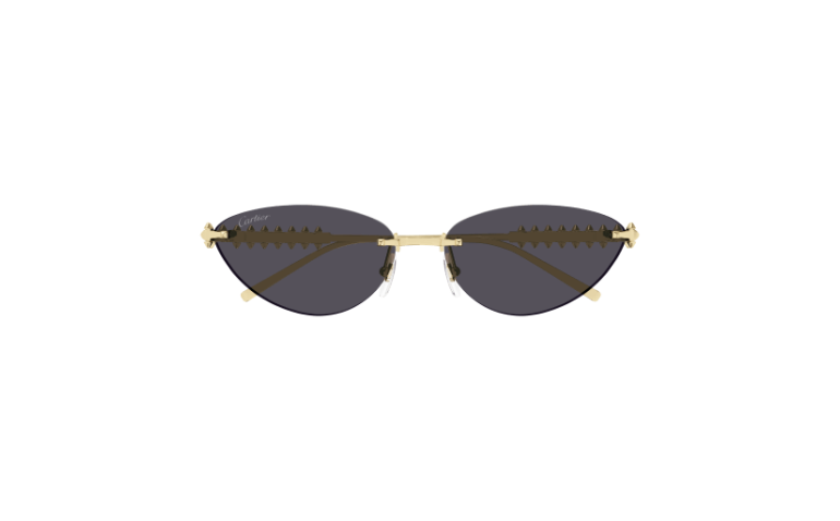 Le célèbre emblème Clash de Cartier est fidèlement reproduit pour la première fois dans la collection de lunettes sur les nouvelles branches distinctives en métal. Monture œil de chat féminine percée pour un look moderne. Chaque Picot peut bouger légèrement, reproduisant le mouvement caractéristique du bijou. Finition or précieuse enrichie du logo Cartier sur les manchons et de verres dédiés.