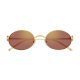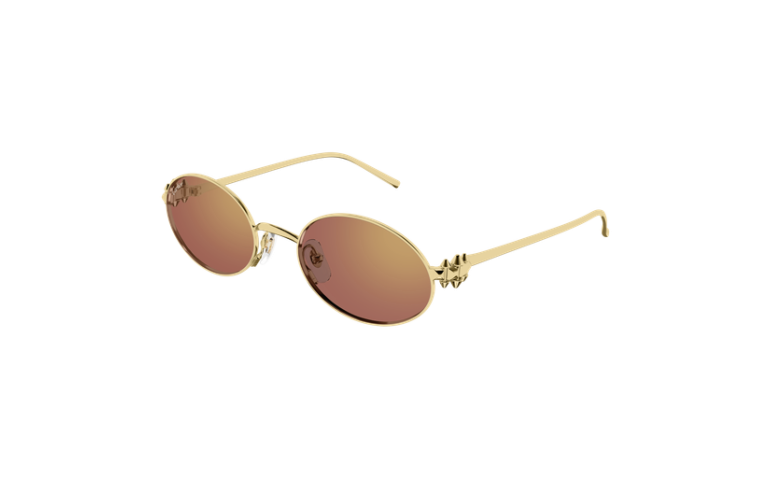Nouvelle évolution Clash de Cartier, caractérisée par un détail iconique allégé au niveau de la charnière métallique. Monture cerclée ovale unisexe, au style moderne et raffiné. Les trois Picots, de dimensions différentes, s'entrelacent parfaitement et présentent une légère mobilité, reproduisant fidèlement l'esthétique de la collection joaillière. Finition précieuse en or, enrichie du logo Cartier sur les manchons, et nouveaux verres inspirés de la collection de joaillerie de la Maison.