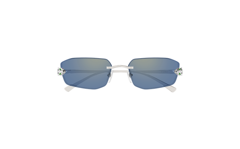Esthétique réinterprétée, contemporaine et stylée, de Panthère Massai, inspirée de la joaillerie Cartier. Monture percée moderne et audacieuse, rehaussée d'une tête de Panthère tridimensionnelle sur la face pour un look unisexe affirmé. Les branches en métal rappellent la tête et la queue de la Panthère et sont ornées de précieuses taches émaillées à la main. Finition précieuse en or ou platine et verres aux couleurs captivantes.