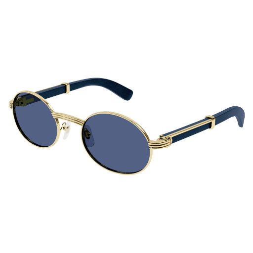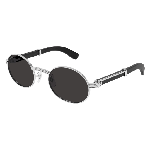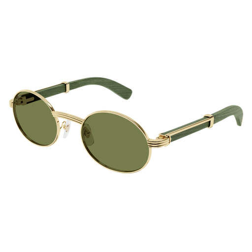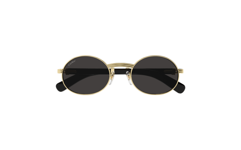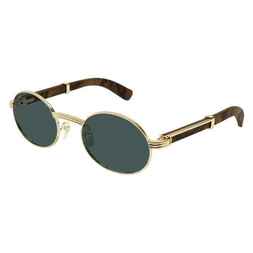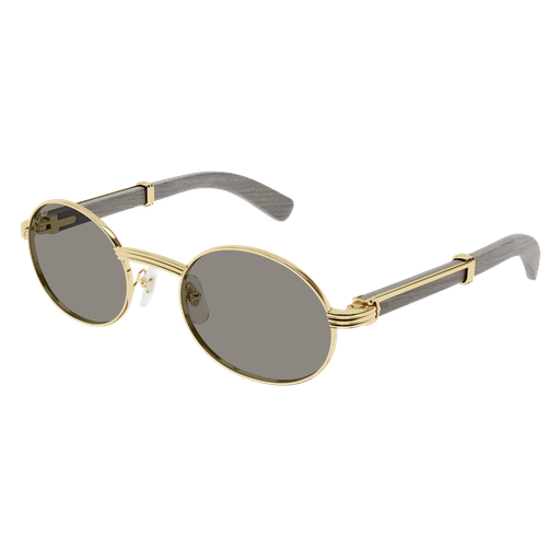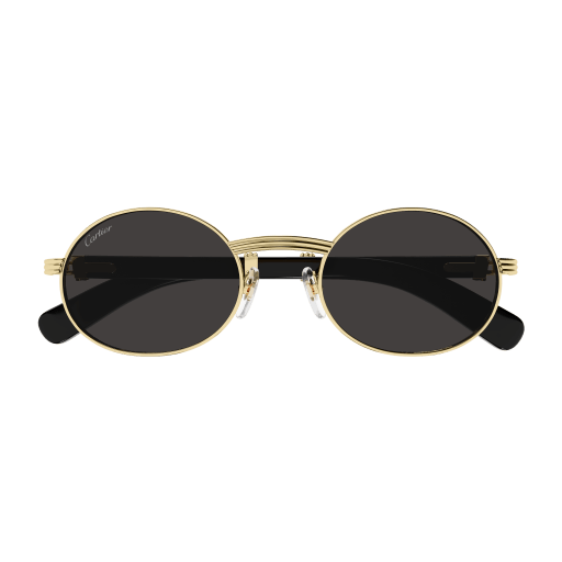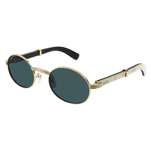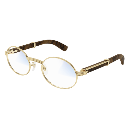 Forme supplémentaire de l'esthétique Première en bois et corne, dotée de branches élégantes ornées du célèbre C de Cartier emblématique et du détail Godron. Nouvelle monture cerclée, ovale et étroite, inspirée de l'emblématique modèle vintage Giverny pour un look unique. Plaque à logo Double C sur les manchons, signature élégante de la Maison. Finition précieuse en or ou platine.