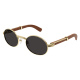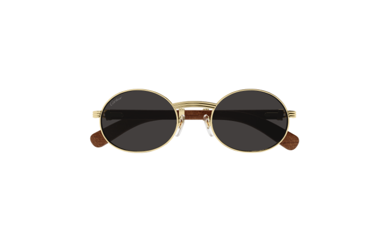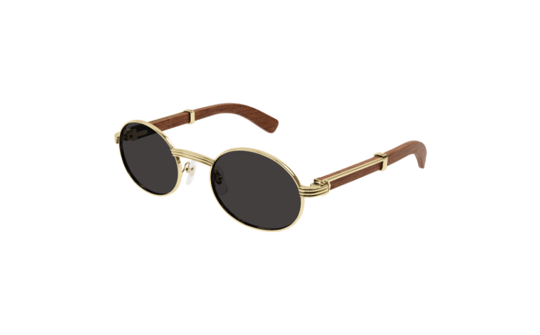 Forme supplémentaire de l'esthétique Première en bois et corne, dotée de branches élégantes ornées du célèbre C de Cartier emblématique et du détail Godron. Nouvelle monture cerclée, ovale et étroite, inspirée de l'emblématique modèle vintage Giverny pour un look unique. Plaque à logo Double C sur les manchons, signature élégante de la Maison. Finition précieuse en or ou platine.