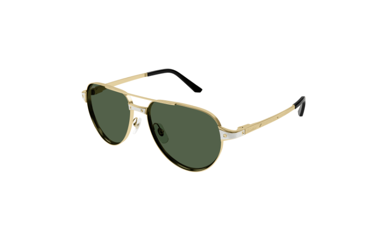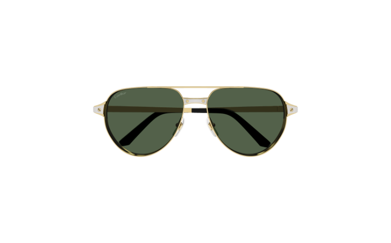 Monture aviateur masculine à double pont pour compléter la famille Santos Evolution par une construction bi-couche audacieuse. Cercle en métal orné d'un élément métallique plat esthétique pour sublimer les vis Santos emblématiques et reproduire la forme de la montre. Branches Santos identifiables également rehaussées des vis décoratives Santos et du logo Cartier gravé. Finition précieuse en or et en platine grâce au traitement bi-galvanique, avec des verres photochromiques sur certaines références.