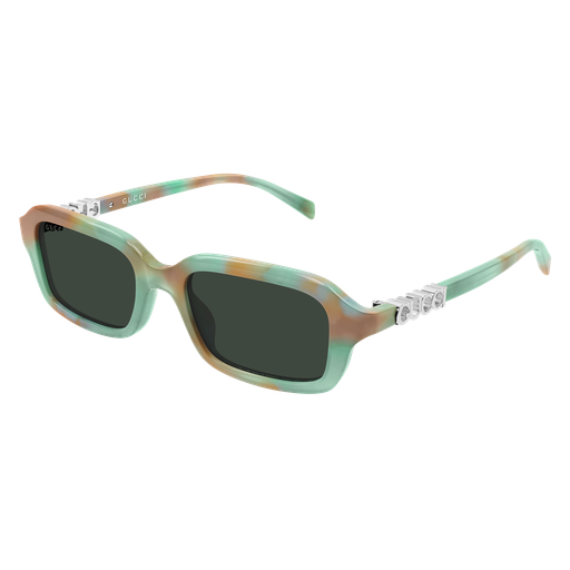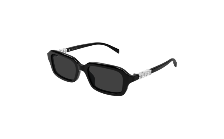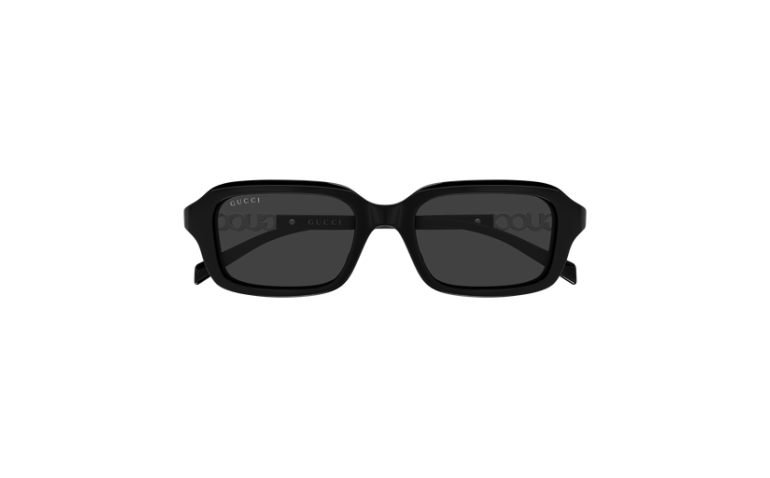 Construction légère en acétate, dotée d'un logo lettering tridimensionnel sur les deux branches. Monture carrée étroite à vocation commerciale. Différentes déclinaisons havane et options de logo strassé.