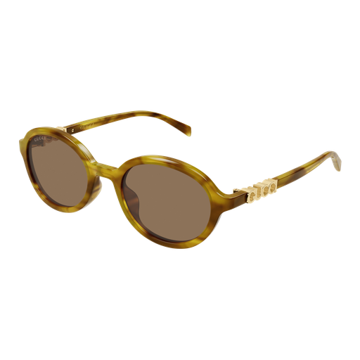 Construction légère en acétate, dotée d'un logo lettering tridimensionnel sur les deux branches. Monture arrondie facile à porter. Différentes déclinaisons havane et options de logo strassé.