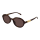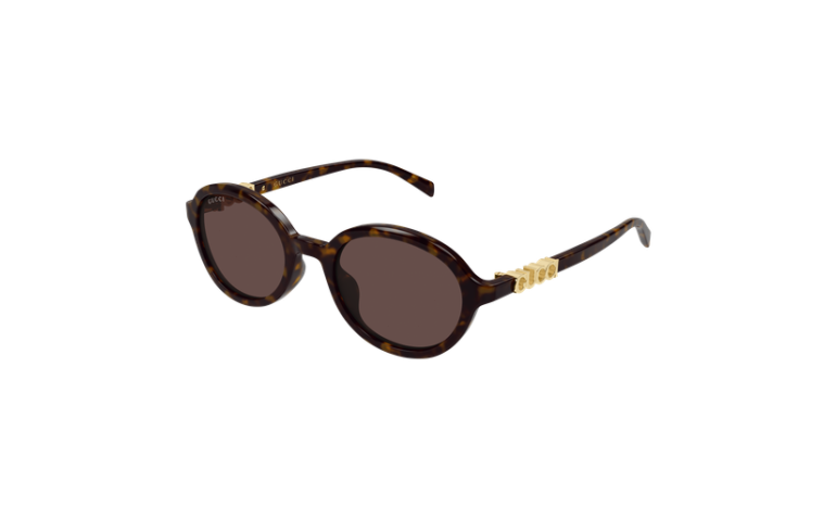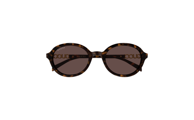 Construction légère en acétate, dotée d'un logo lettering tridimensionnel sur les deux branches. Monture arrondie facile à porter. Différentes déclinaisons havane et options de logo strassé.