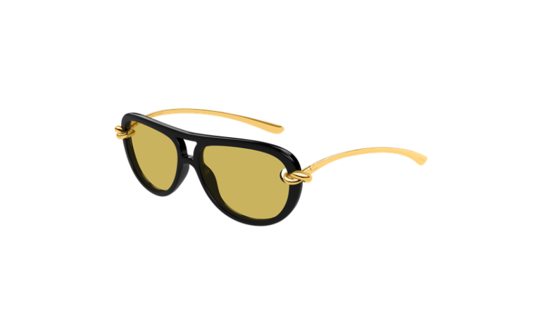 Monture aviateur d’inspiration vintage. Modèle aux courbes élégantes, orné d'un nœud sur chaque tenon. Manchon organique intégrant un logo script gravé au laser.