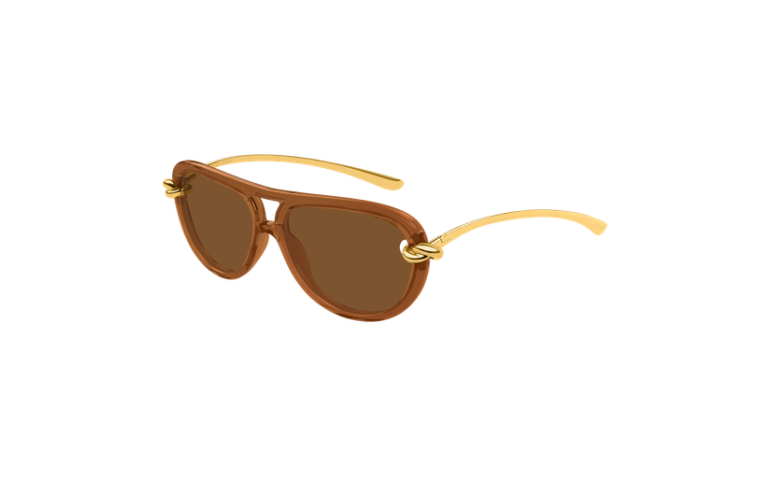 Monture aviateur d’inspiration vintage. Modèle aux courbes élégantes, orné d'un nœud sur chaque tenon. Manchon organique intégrant un logo script gravé au laser.