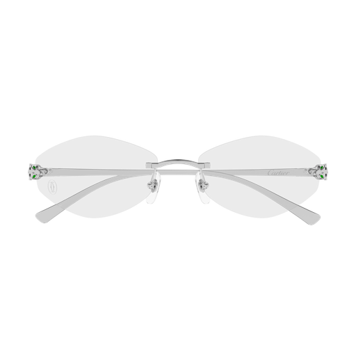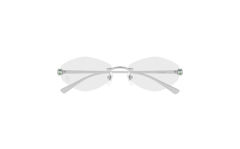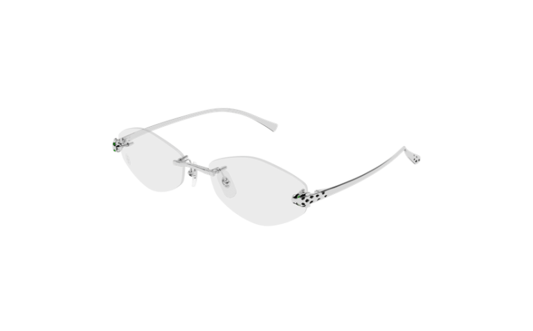 Esthétique plus légère et confortable de Panthère Massai inspirée de la joaillerie Cartier. Monture percée moderne et audacieuse, rehaussée d'une tête de Panthère tridimensionnelle sur la face pour un look authentique. Les branches plus fines en métal rappellent la tête et la queue de la Panthère et sont ornées de précieuses taches émaillées à la main. Finition précieuse en or ou platine.