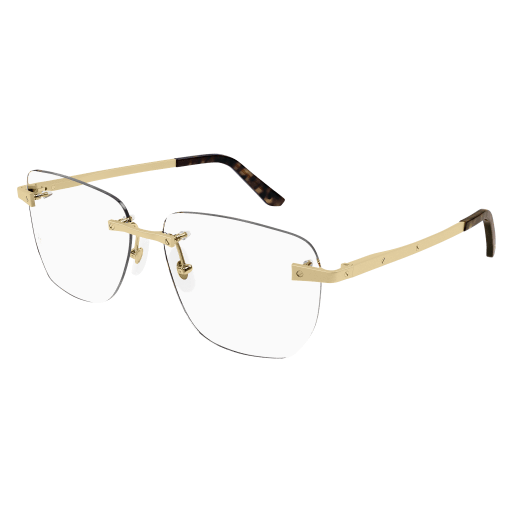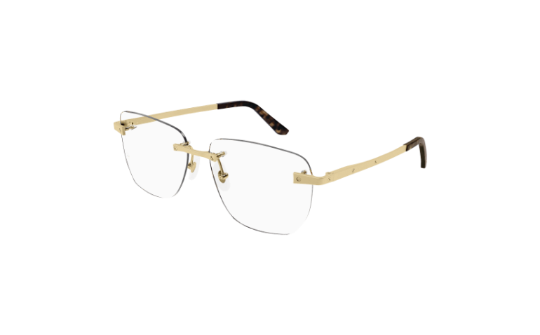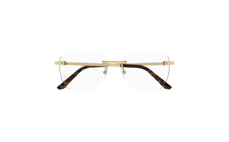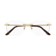 Monture rectangulaire non cerclée pour compléter la famille Santos Classic. Vis Santos décoratives sur le pont et les branches. Finition précieuse en or et platine.