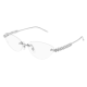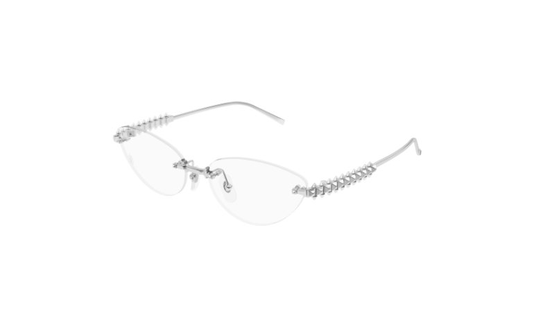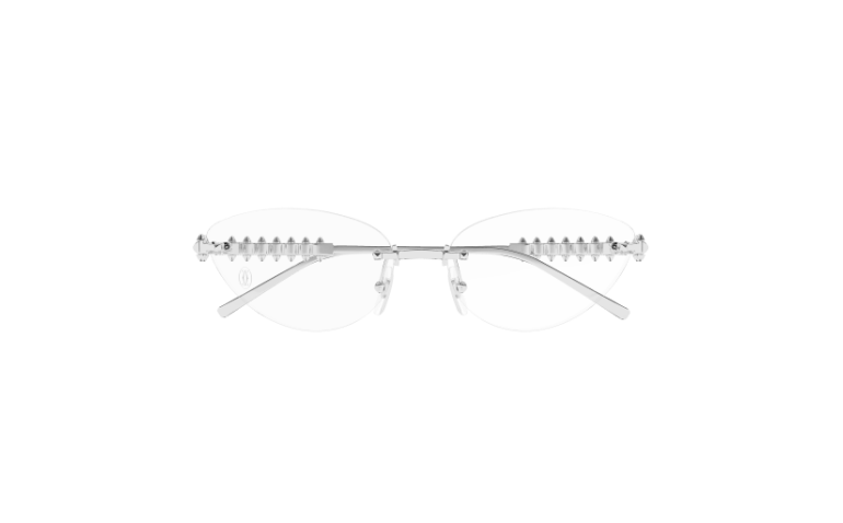Le célèbre emblème Clash de Cartier est fidèlement reproduit pour la première fois dans la collection de lunettes sur les nouvelles branches distinctives en métal. Monture œil de chat féminine non cerclée pour un look sophistiqué. Chaque Picot peut bouger légèrement, reproduisant le mouvement caractéristique du bijou. Finition précieuse or ou platine enrichie du logo Cartier sur les manchons.