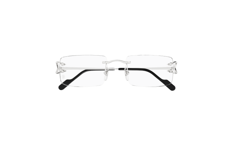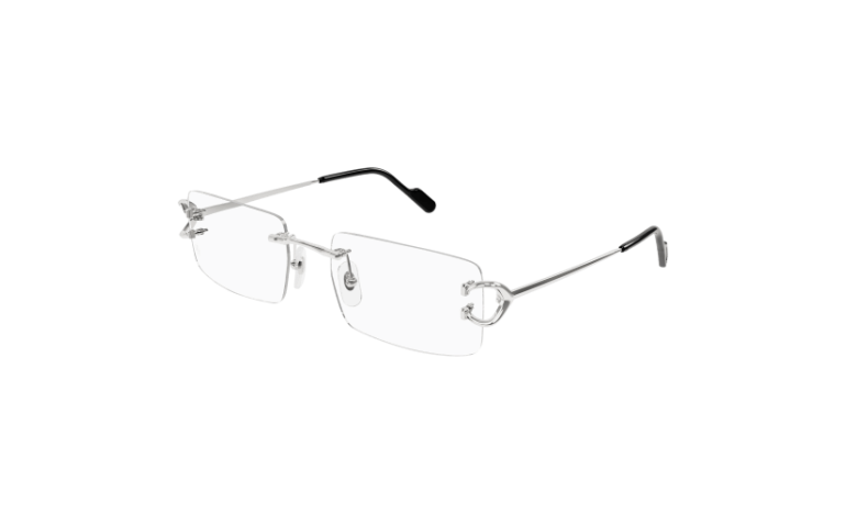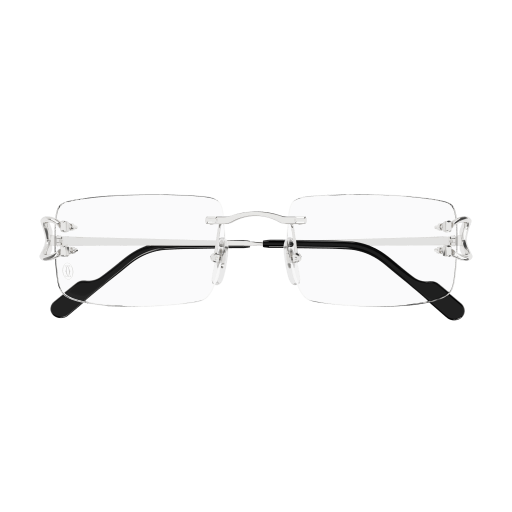 Monture optique non cerclée rehaussée du détail Décor C emblématique en tant qu'élément fonctionnel et esthétique de la charnière. Nouvelle forme rectangulaire facile à porter pour un look moderne et unique. Manchons en acétate avec étiquette logo Cartier pour garantir un confort optimal. Finition précieuse en or ou platine.