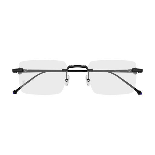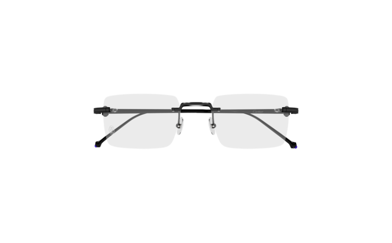 Construction percée légère en titane pour compléter la famille Pasha de Cartier et garantir plus de légèreté et de confort. Monture rectangulaire classique pour un look sophistiqué. Motif Clou de Paris comme élément esthétique et fonctionnel des charnières, inspiré du bracelet de la montre et pierre semi-précieuse (Spinelle bleu) qui orne les manchons. Finitions précieuses or, platine ou PVD noir.