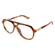 Monture pilote classique rehaussée d'un élégant double pont. Monture en acétate légère et confortable, rehaussée d'un détail métallique précieux. Palette féminine comprenant des nuances havane et des acétates laiteux.