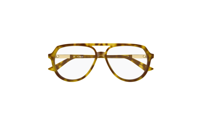 Monture pilote classique rehaussée d'un élégant double pont. Monture en acétate légère et confortable, rehaussée d'un détail métallique précieux. Palette féminine comprenant des nuances havane et des acétates laiteux.