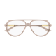 Monture pilote classique rehaussée d'un élégant double pont. Monture en acétate légère et confortable, rehaussée d'un détail métallique précieux. Palette féminine comprenant des nuances havane et des acétates laiteux.