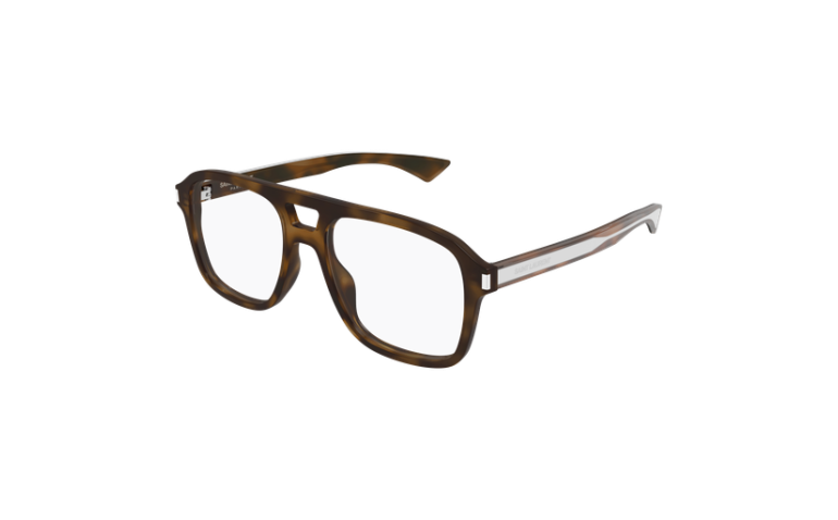 Évolution du concept naked wirecore arrow avec une taille de branche réduite, pour offrir un ajustement plus léger et plus confortable, ouvrant de nouvelles perspectives enthousiasmantes dans l'optique. Monture pilote unisexe à double pont. Âme métallique en forme de flèche et visible à travers une finition ultra brillante coulée dans la résine, avec logo saint laurent gravé.