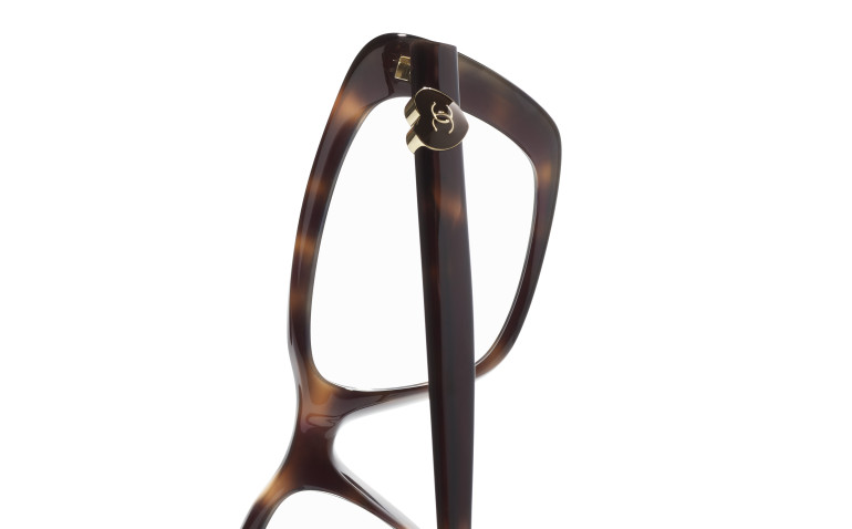 Les lunettes optiques sont livrées avec des verres de démonstration imprimés d'une inscription « CHANEL ».