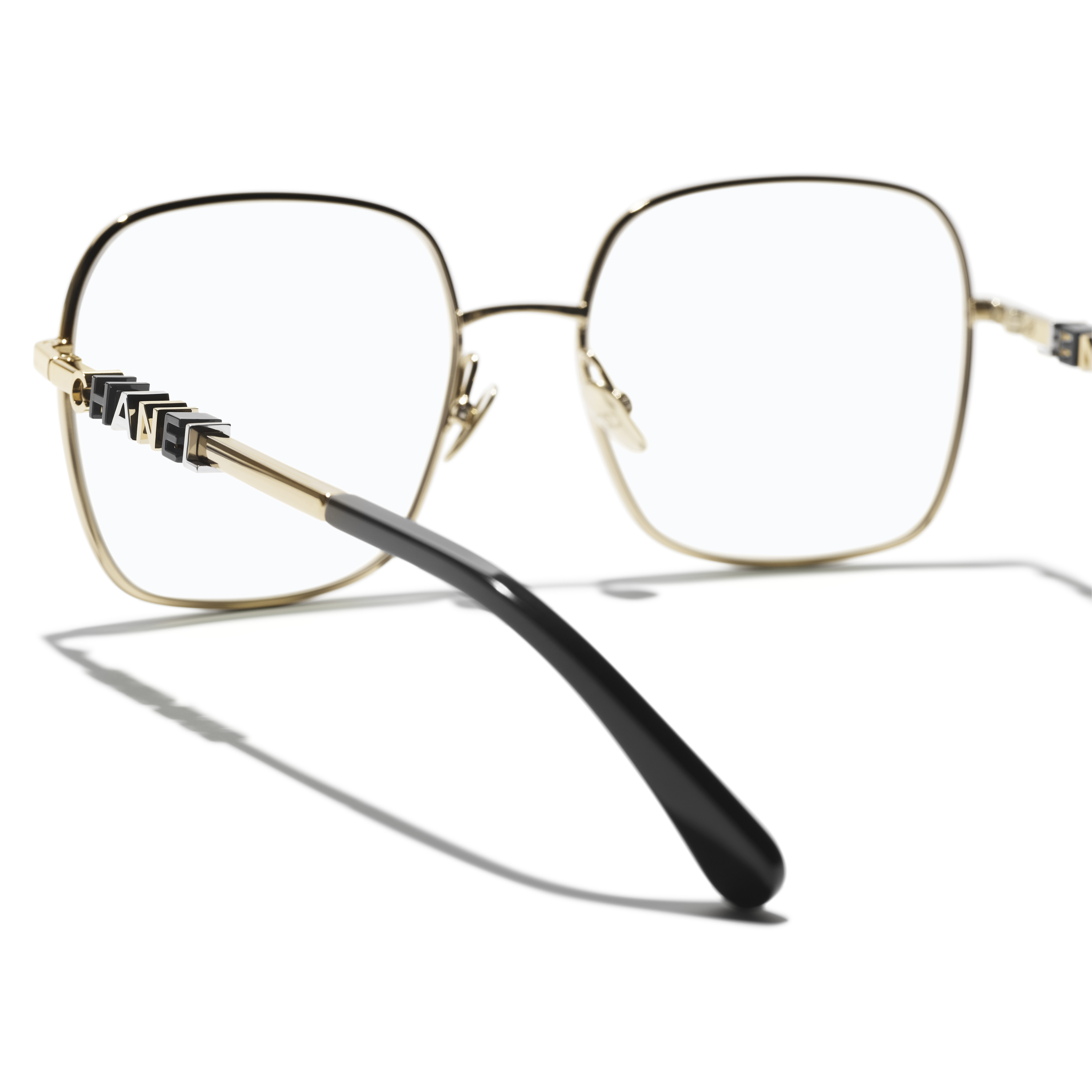Les lunettes optiques sont livrées avec des verres de démonstration imprimés d'une inscription « CHANEL ».