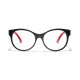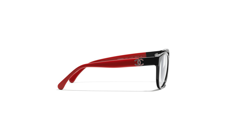 Les lunettes optiques sont livrées avec des verres de démonstration imprimés d'une inscription « CHANEL ».