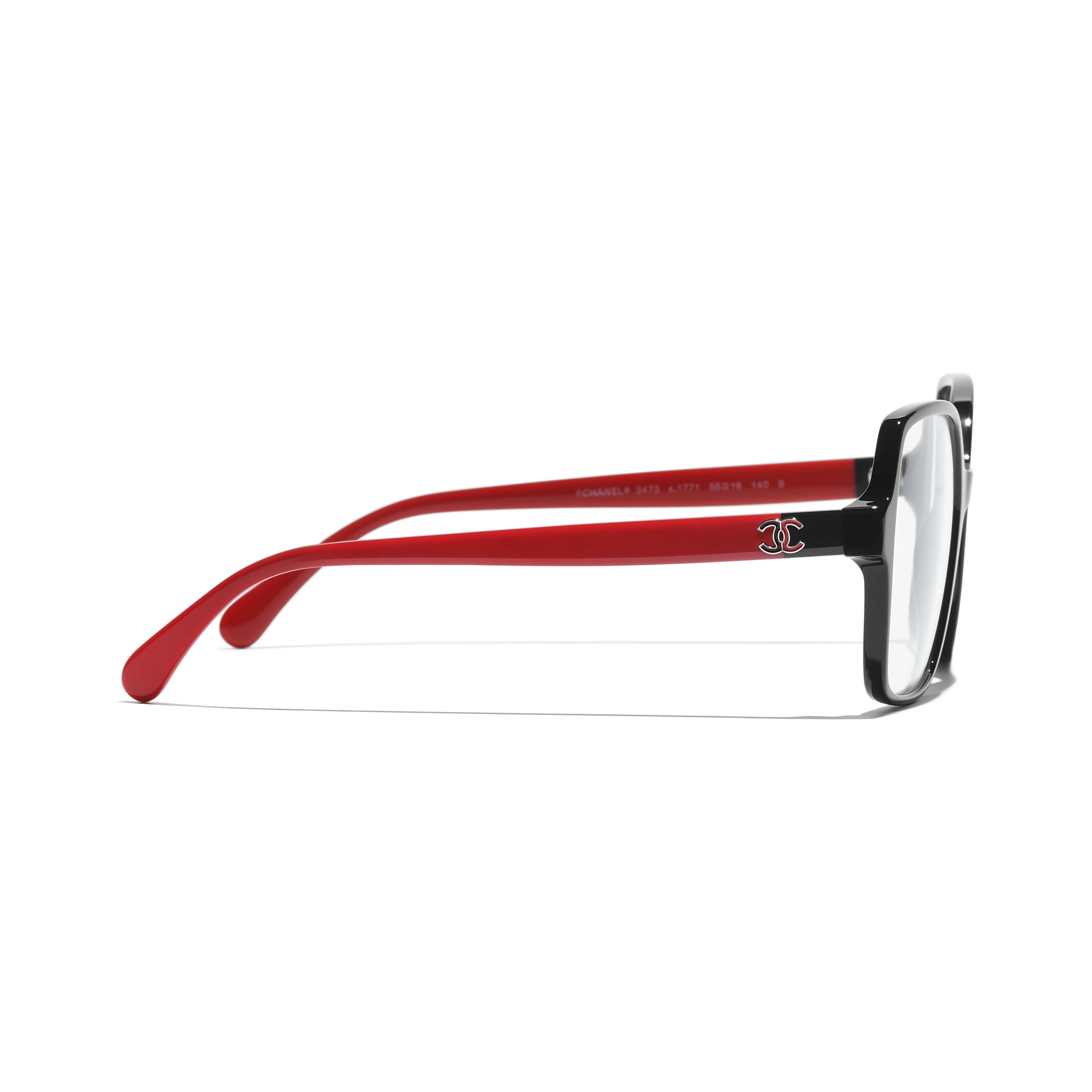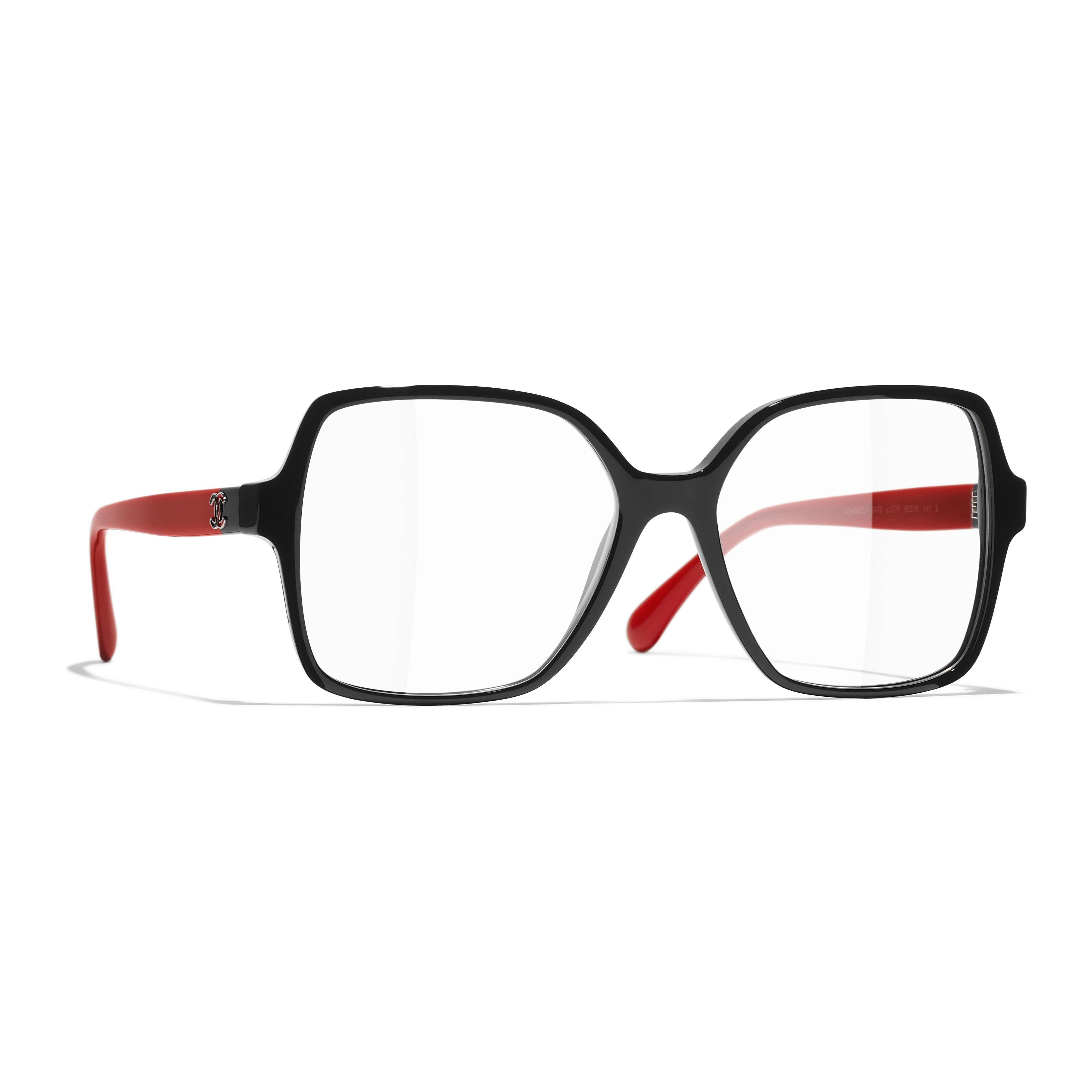 Les lunettes optiques sont livrées avec des verres de démonstration imprimés d'une inscription « CHANEL ».
