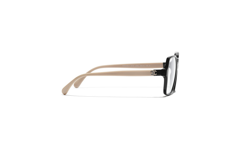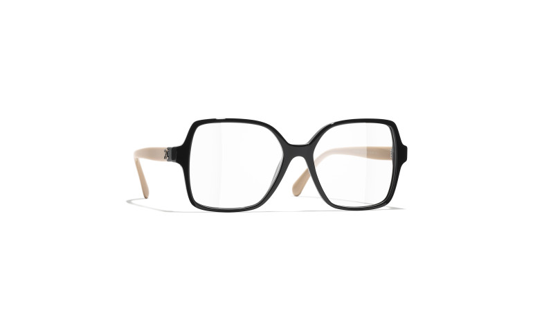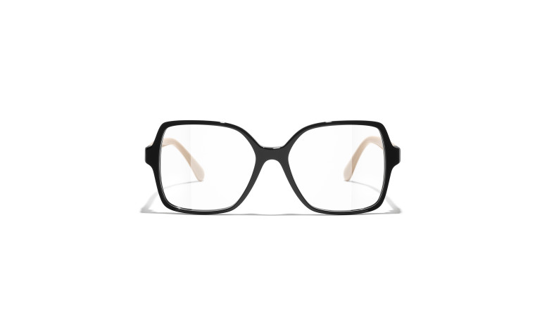Les lunettes optiques sont livrées avec des verres de démonstration imprimés d'une inscription « CHANEL ».