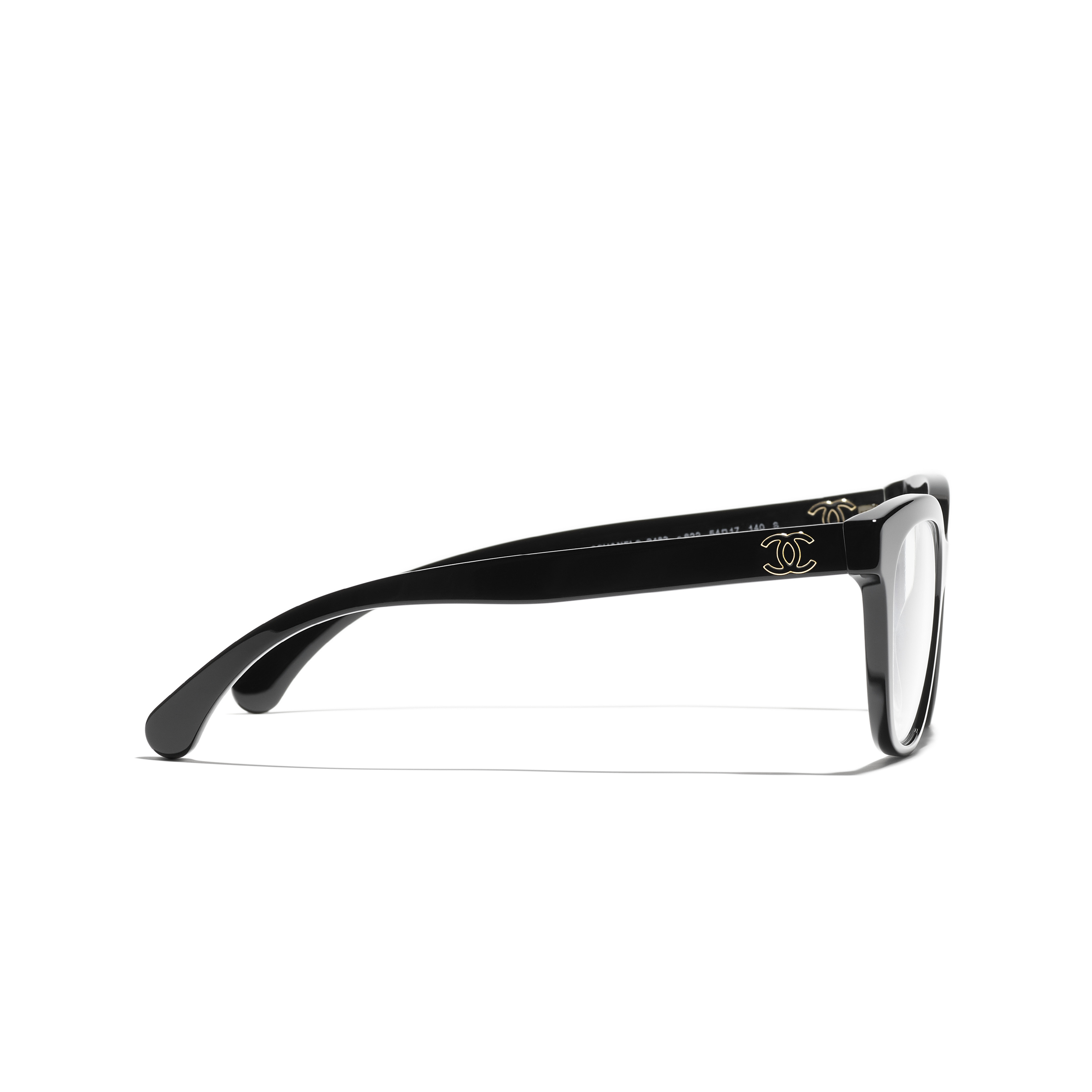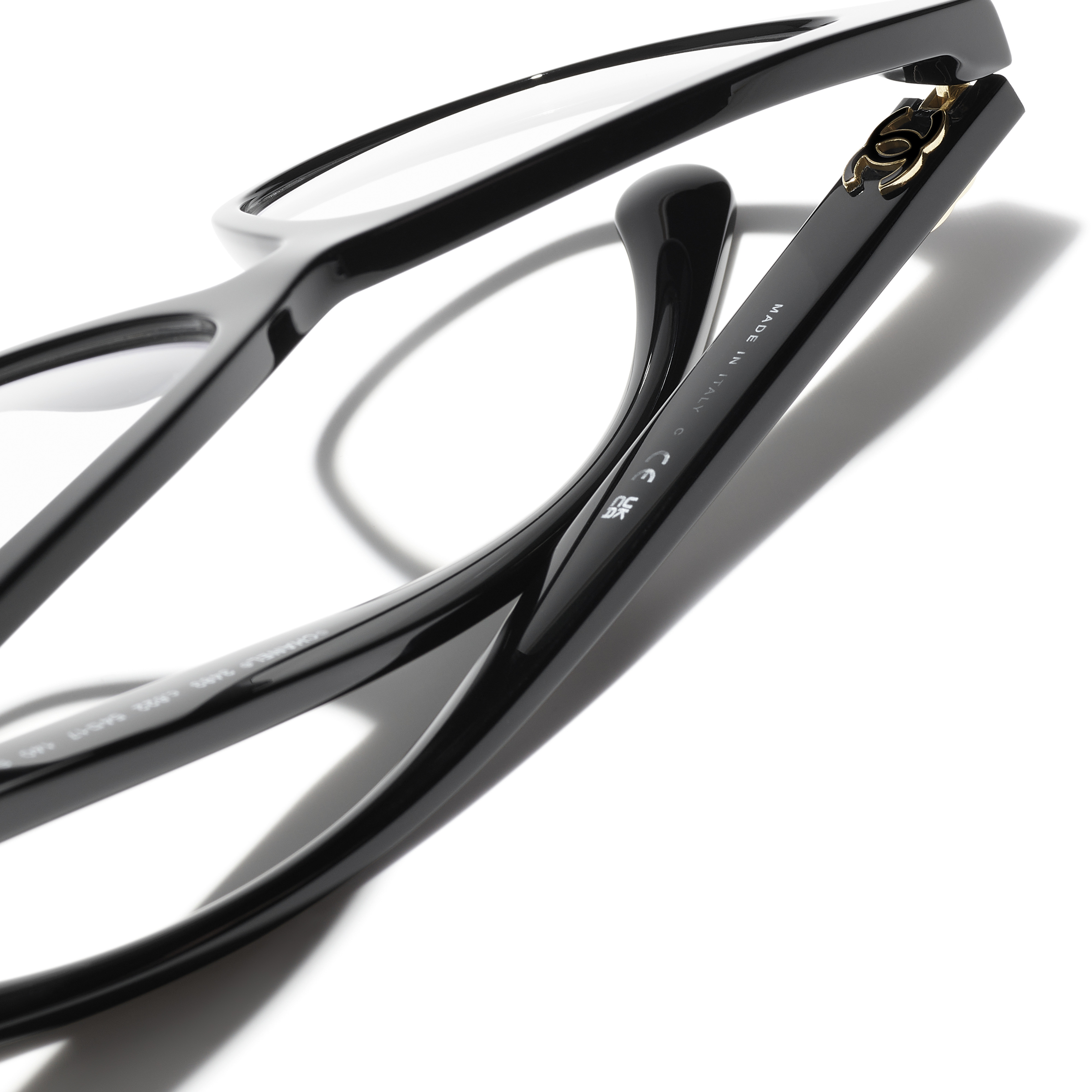 Les lunettes optiques sont livrées avec des verres de démonstration imprimés d'une inscription « CHANEL ».