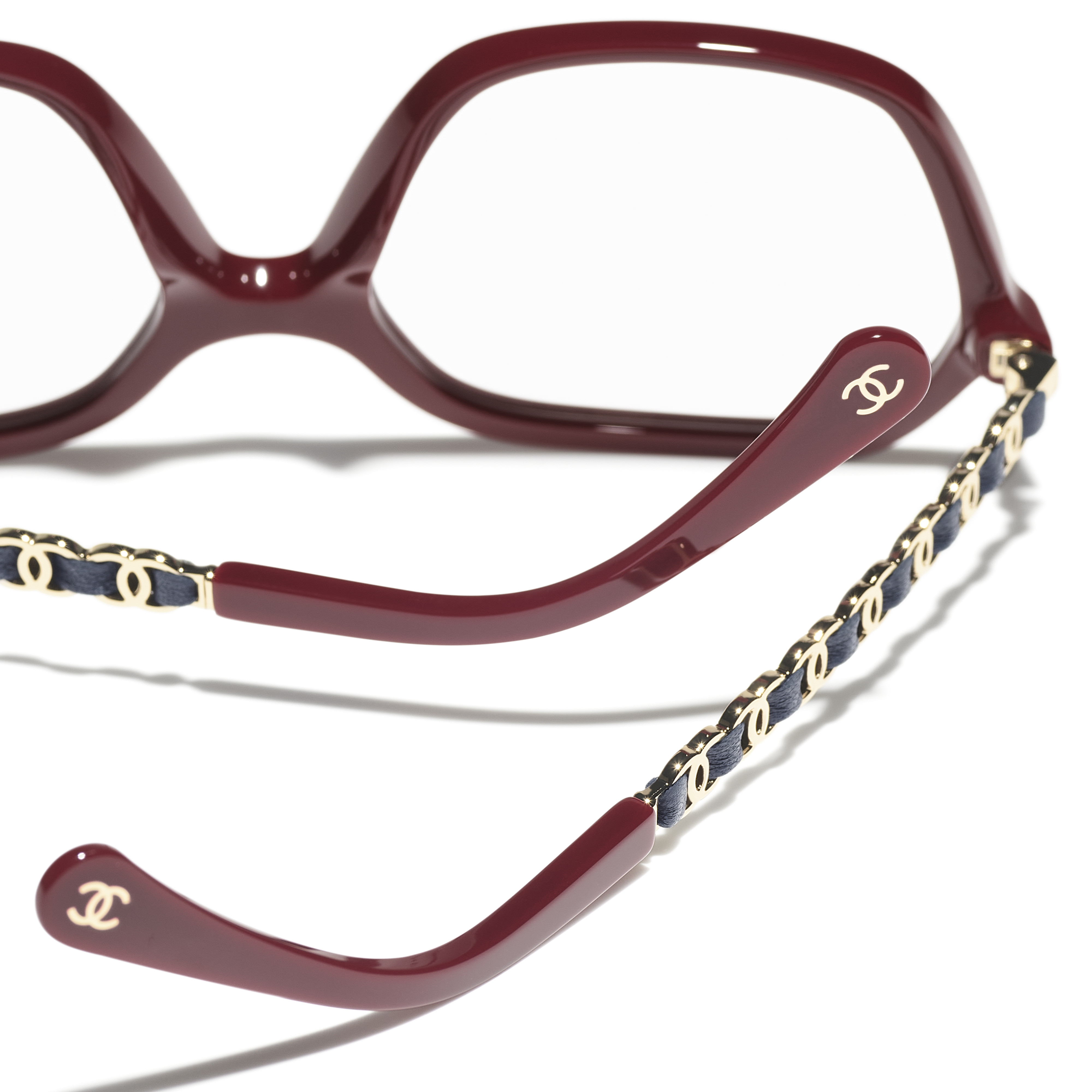 Les lunettes optiques sont livrées avec des verres de démonstration imprimés d'une inscription « CHANEL ».
