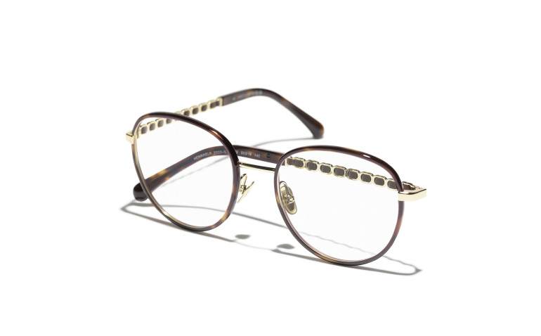 Les lunettes optiques sont livrées avec des verres de démonstration imprimés d'une inscription « CHANEL ».