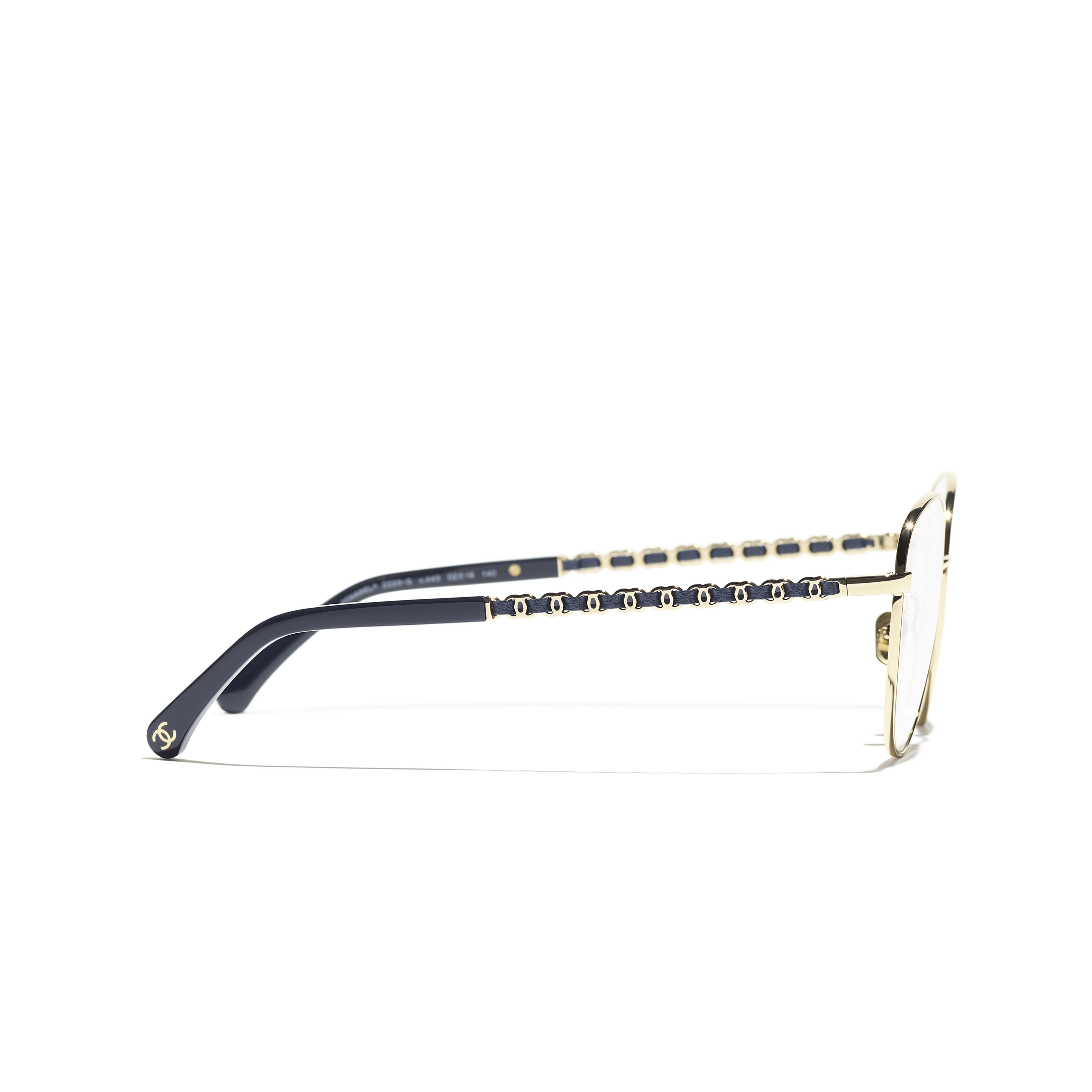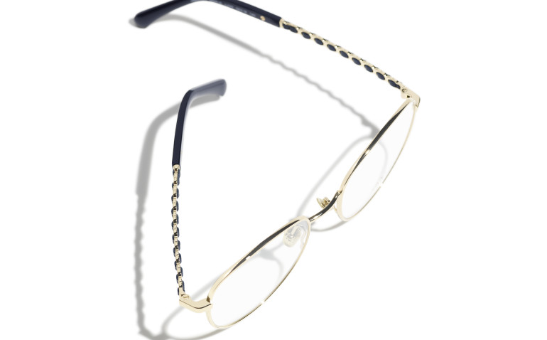Les lunettes optiques sont livrées avec des verres de démonstration imprimés d'une inscription « CHANEL ».