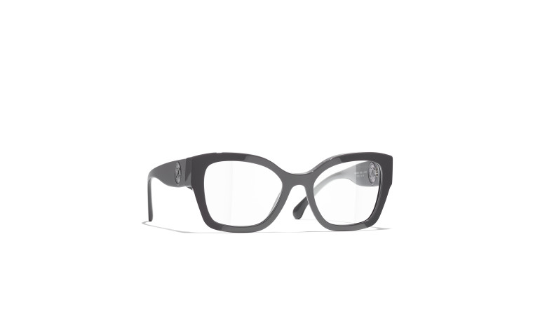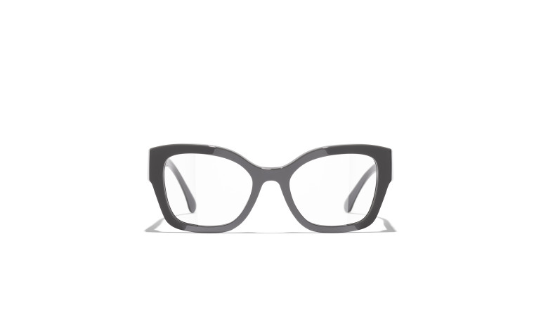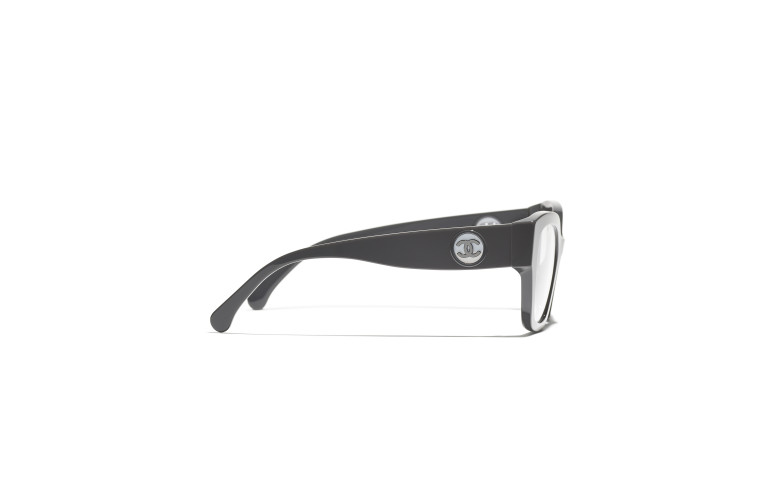 Les lunettes optiques sont livrées avec des verres de démonstration imprimés d'une inscription « CHANEL ».