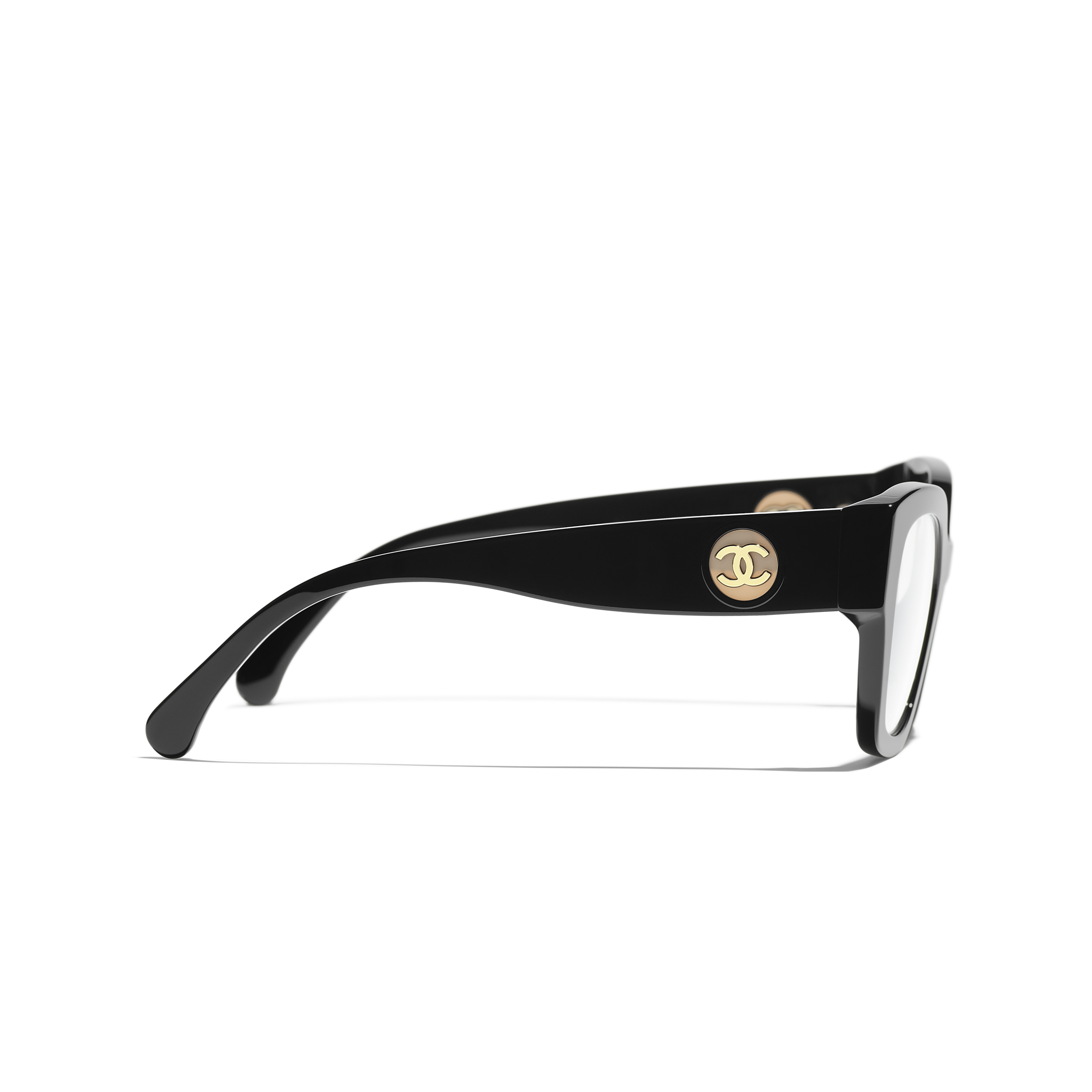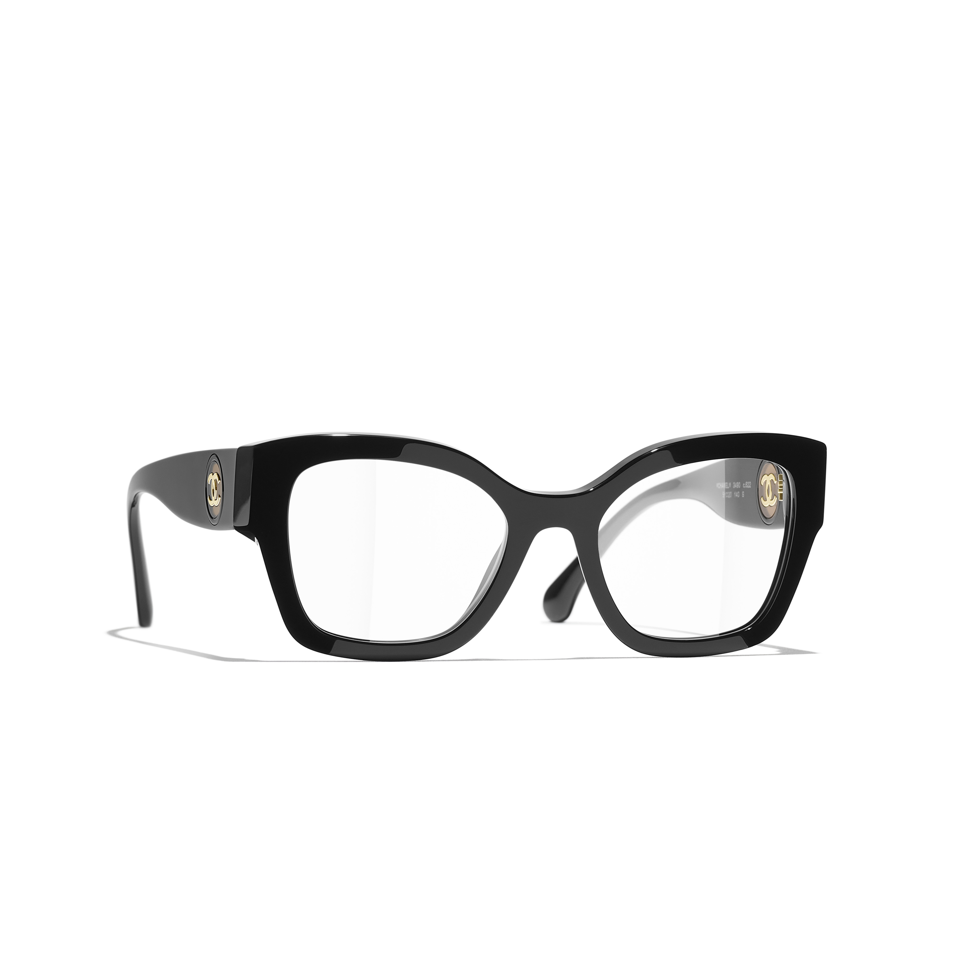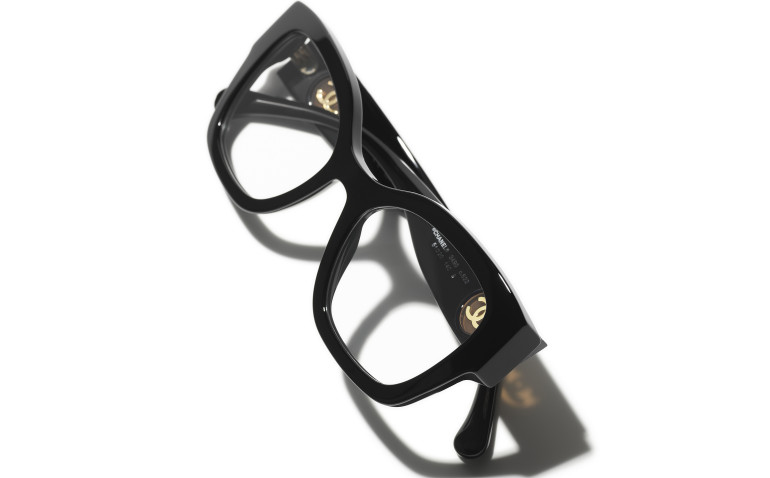 Les lunettes optiques sont livrées avec des verres de démonstration imprimés d'une inscription « CHANEL ».